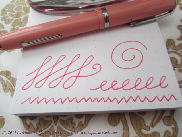 Pilot Iroshizuku Kosumosu Pilot Iroshizuku Kosumosu’s color is a close match to my pink Esterbrook Previous Photo Next Photo